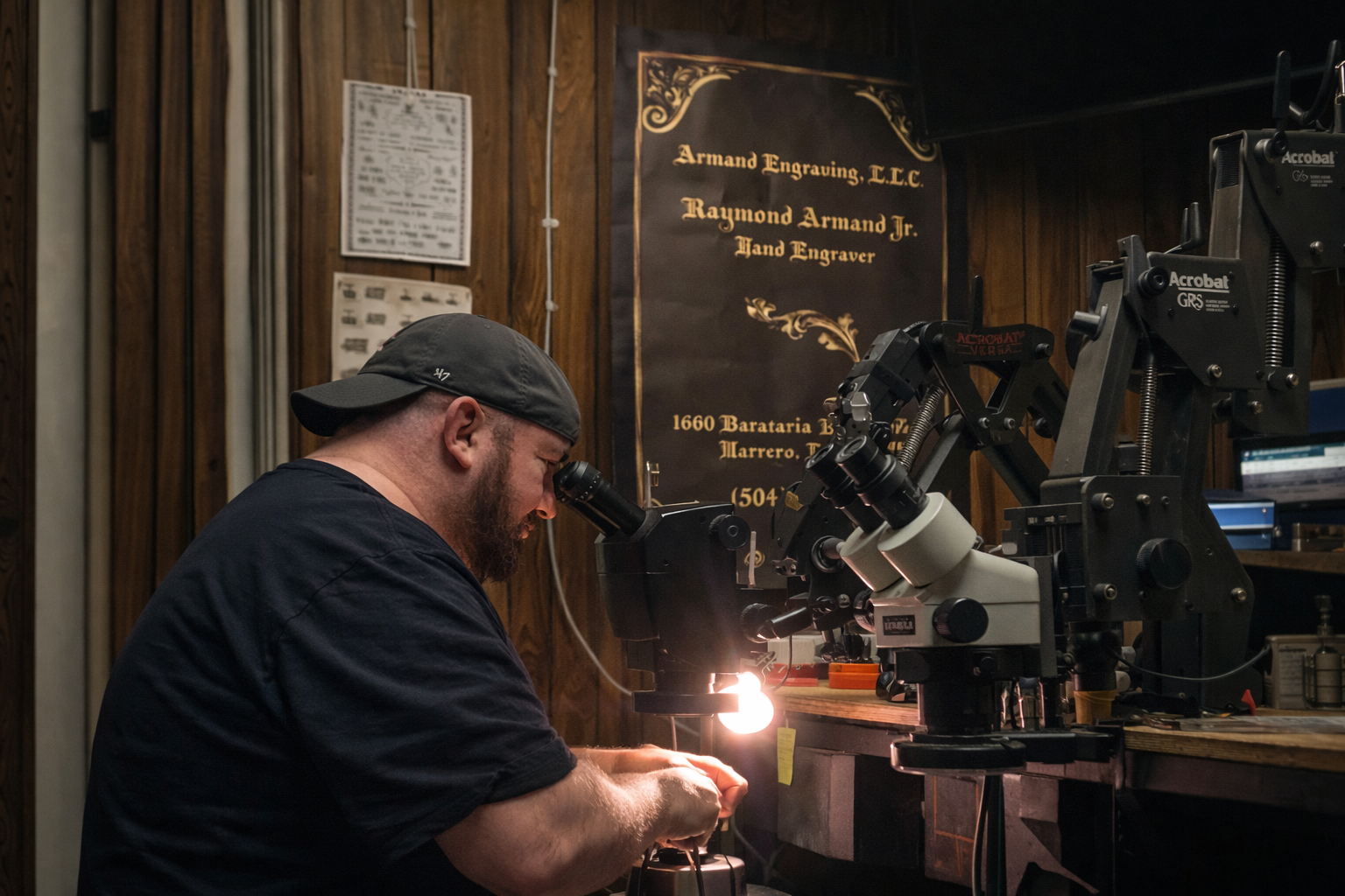 Ray began engraving at 18 in his hometown of Chalmette, Louisiana, learning the craft at his father’s bench. His father warned him not to follow the trade — convinced that laser machines and computerized engraving would soon take over — but Ray couldn’t walk away. He had been drawing since childhood, always sketching, always creating, and the work felt like home.